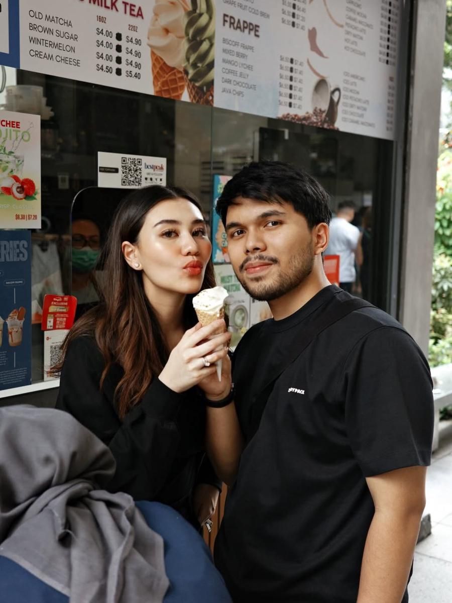 4. Panasnya Singapura membuat Aaliyah dan Thariq menikmati es krim berdua. Punya rasa favorit yang berbeda!